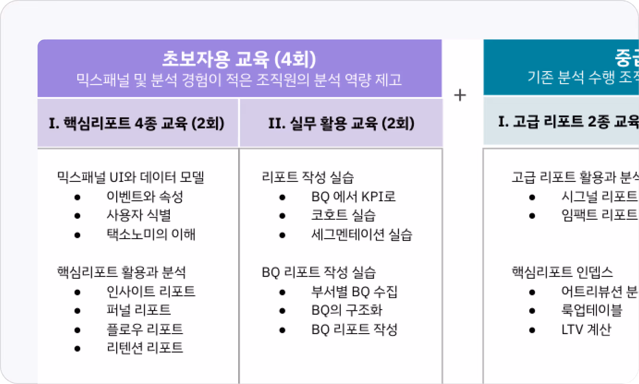 믹스패널 교육부터 실습, 분석 가이드까지 제공해