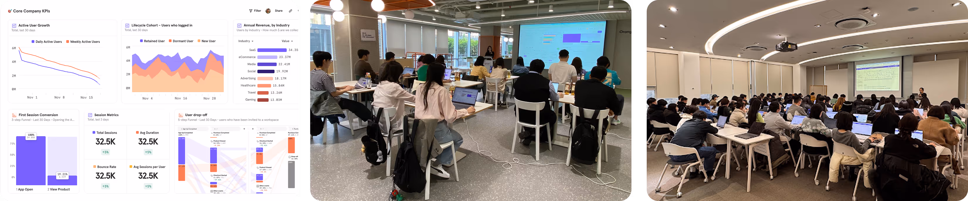 "솔루션을 바꾸면서 전사적인 데이터 활용 문화를 만들고자 했어요. 실시간 피드백과 실습 중심 온보딩 덕분에